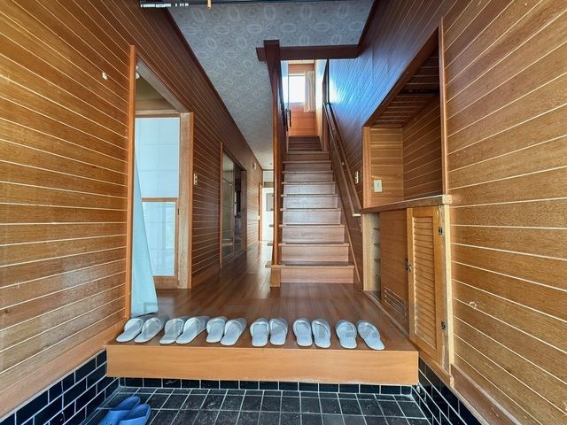 木目が懐かしい雰囲気。家族もゲストも気持ちよく迎える玄関。