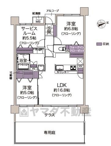 間取り詳細 | LDK16.8畳(1F)、洋6.8畳(1F)、洋5畳(1F)、S5.5畳(1F) | 土地権利 | 所有権 |