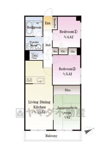| 間取り詳細 | LDK11.5畳、洋5.3畳、洋4.8畳、和6畳 | 土地権利 | 所有権 |
