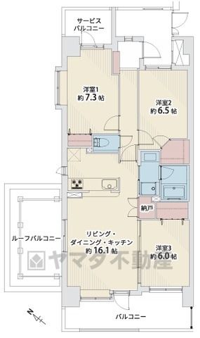 | 間取り詳細 | LDK16.1畳、洋7.3畳、洋6.5畳、洋6畳 | 土地権利 | 所有権 |