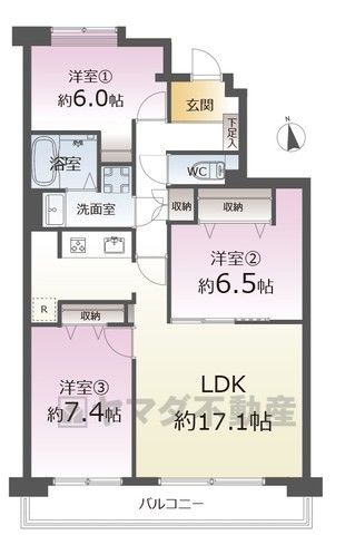 | 間取り詳細 | LDK17.1畳、洋7.4畳、洋6.5畳、洋6畳 | 土地権利 | 所有権 |