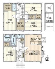 LDK16.9畳(1F)、洋7.3畳(1F)、洋9.1畳(2F)、洋7.3畳(2F)、その他3畳(2F) |